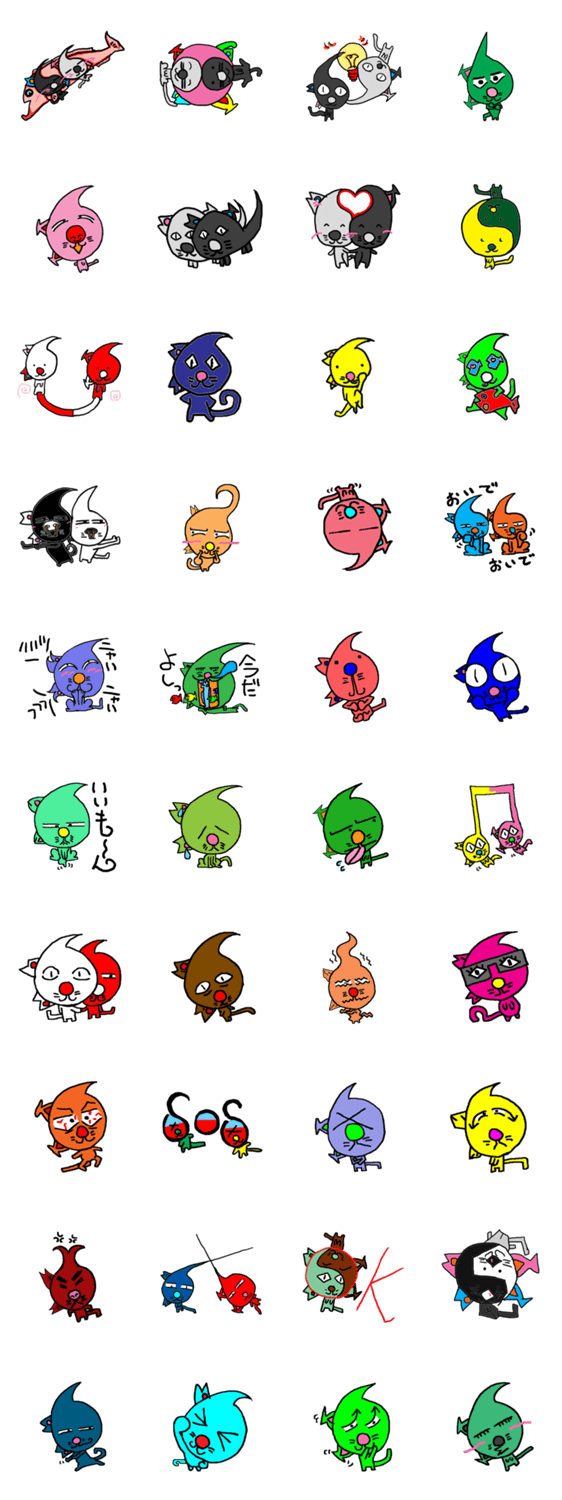 陰陽白黒にゃんこさん達、いろんなカラーの表と裏・・・表と表、裏と裏。
