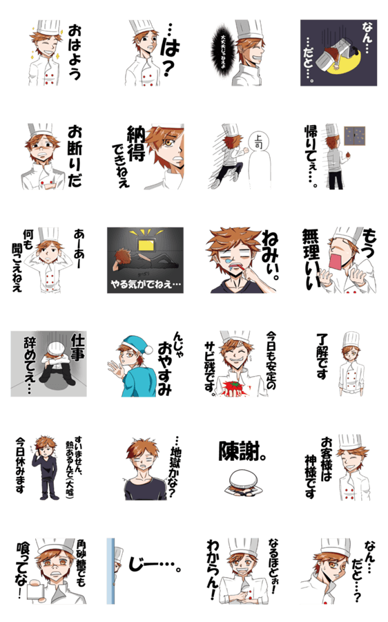 今日も今日とてサビ残…!! そんな悲しき全社畜に捧げる、社畜のための社畜スタンプ!(料理人バージョン) くそったれな上司に送り付けてやろう!