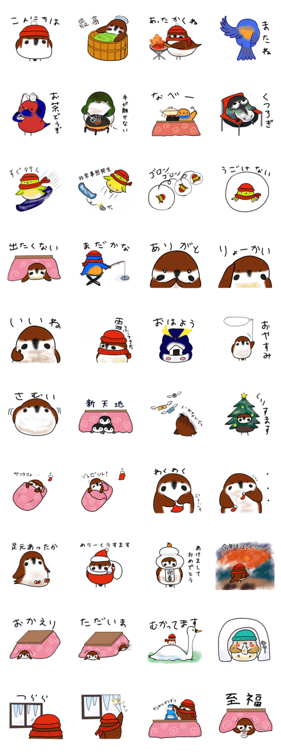 | スタンプ説明 | わちゃわちゃしたとりたちの冬の日々を使いやすいスタンプにしました。 |