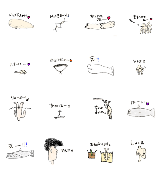 あざらしをはじめとする、どうぶつやにんげんたちのゆるスタンプ。