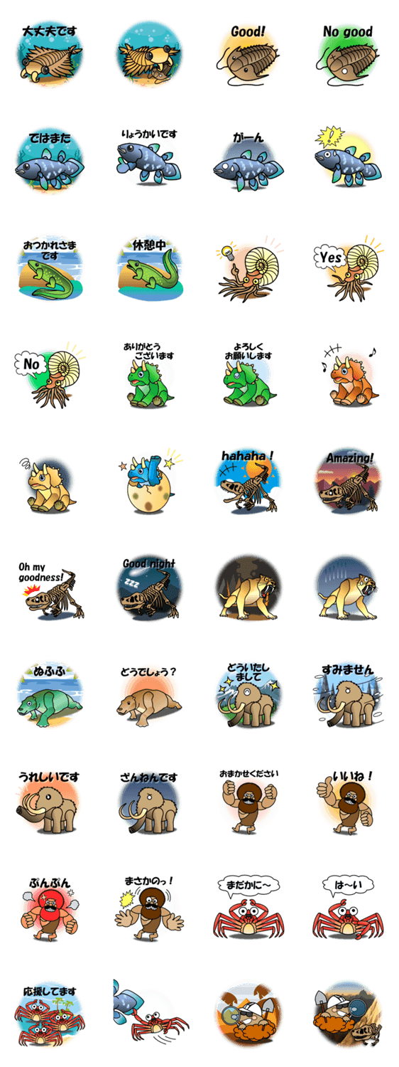 かわいらしい古代生物たちのスタンプです。