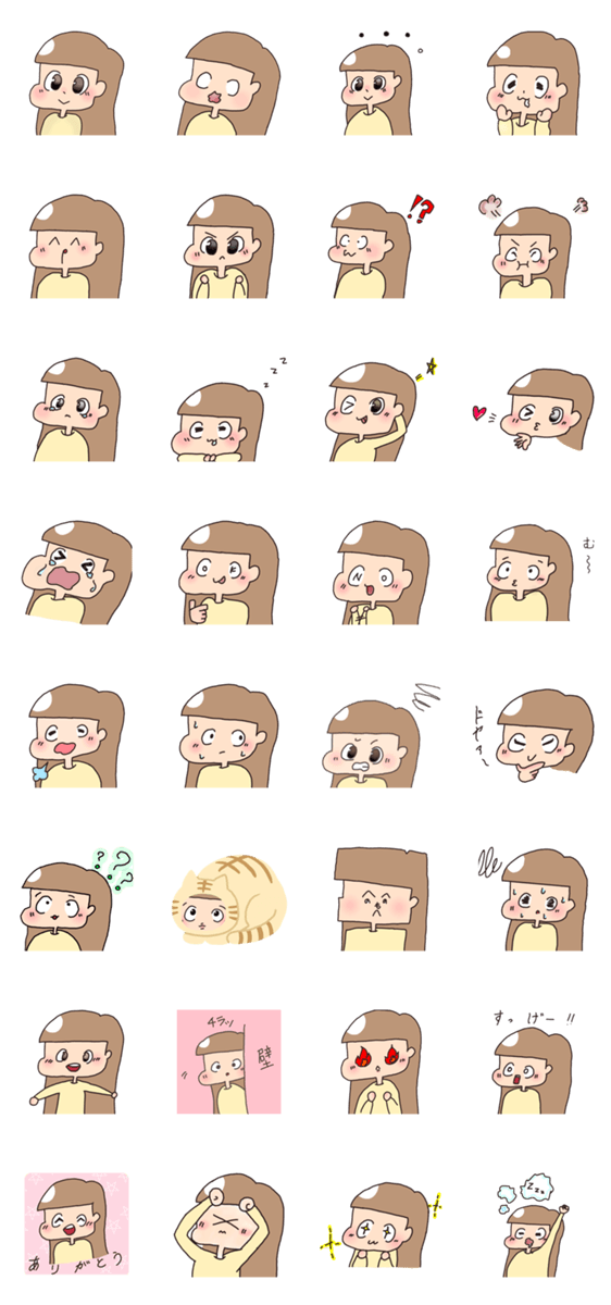 表情豊かな茶髪の女の子スタンプ!使いやすいゆるかわ系スタンプを使って友達に沢山スタンプを送ろう!