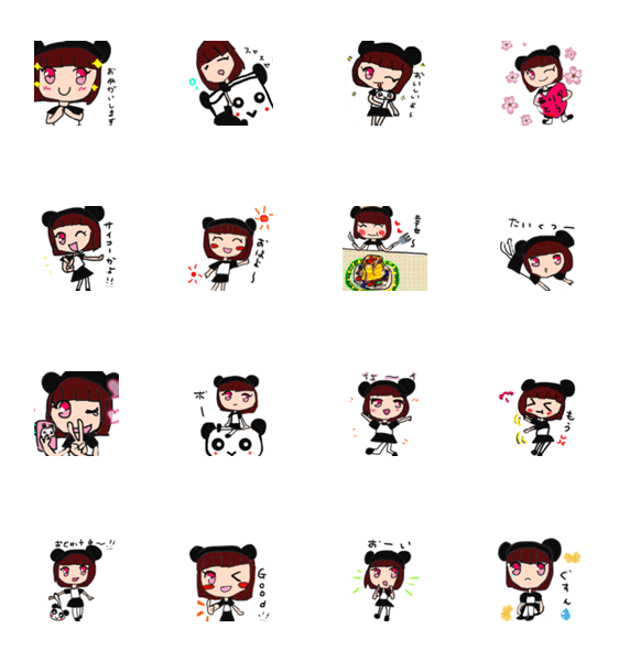 スタンプ説明 パンダの着ぐるみが大好きな女の子のスタンプ