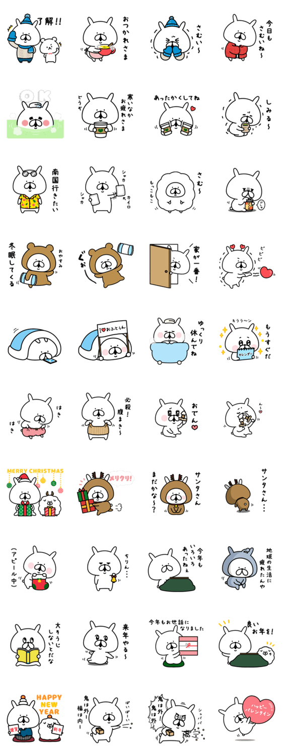 ゆるうさぎの冬のスタンプ第3弾!寒い冬に毎日使えるスタンプはもちろん!クリスマス・年末・お正月・節分・バレンタインまで冬のイベントで使えるスタンプの詰め合わせ!
