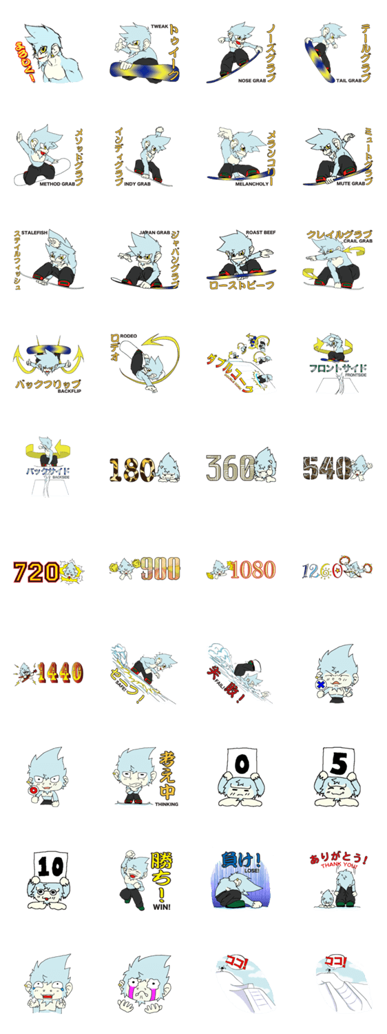 | スタンプ説明 | キッカーとハーフパイプで遊び、練習、大会などLINEのスタンプで簡単なコミュニケーションに使用です。 |