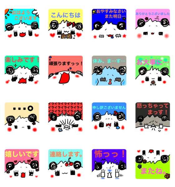 白ネコのあいうえお・・・ってるスタンプ