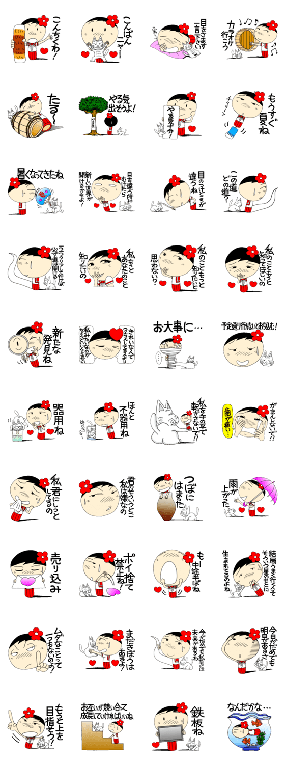 こけし人形の女子高生コケ子のある日常を描いた第8弾のスタンプです。よろしくお願いします。