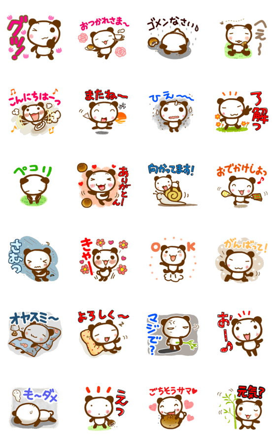 | スタンプ説明 | 毎日でも食べたいあんぱん。そんなあなたと毎日おつきあいしたいあんパンダ。おいしく使ってね! |