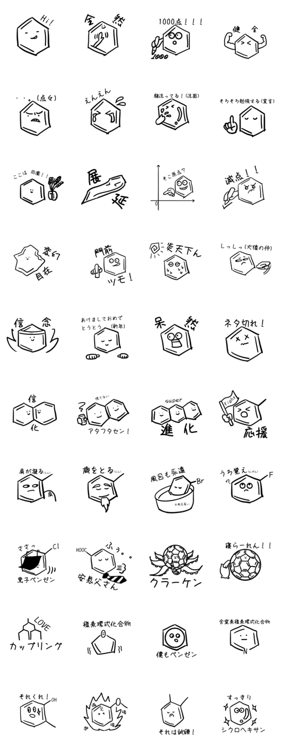 理系用!韻を踏むベンゼン君 -LINEスタンプマニア