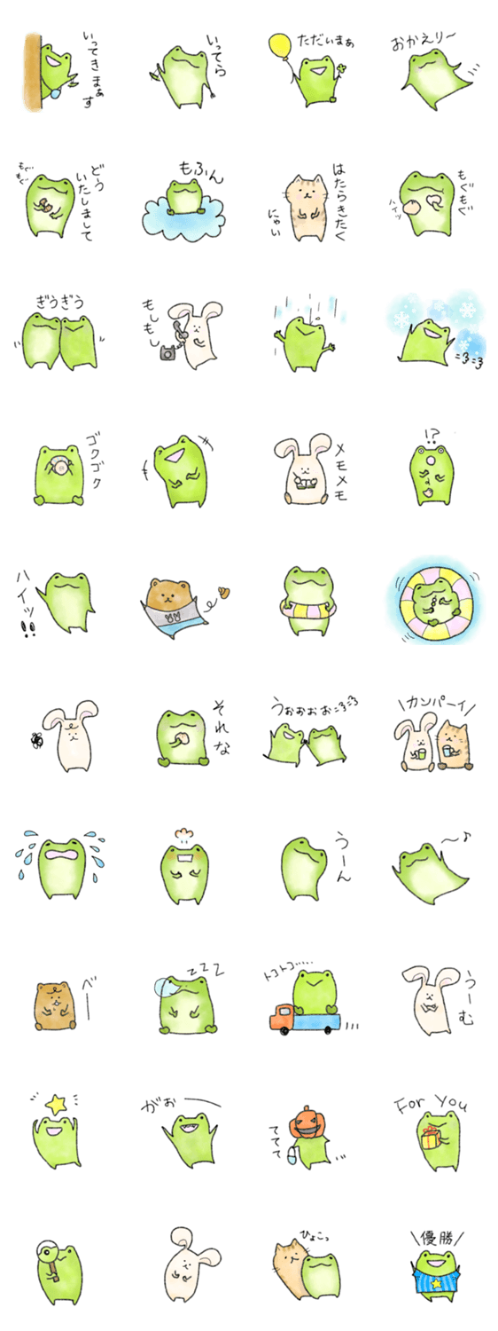 | スタンプ説明 | もふもふカエルとゆかいな仲間たちの日常スタンプのパート2。ちょこっとプールや秋冬イベントも楽しむケロもふ。 |