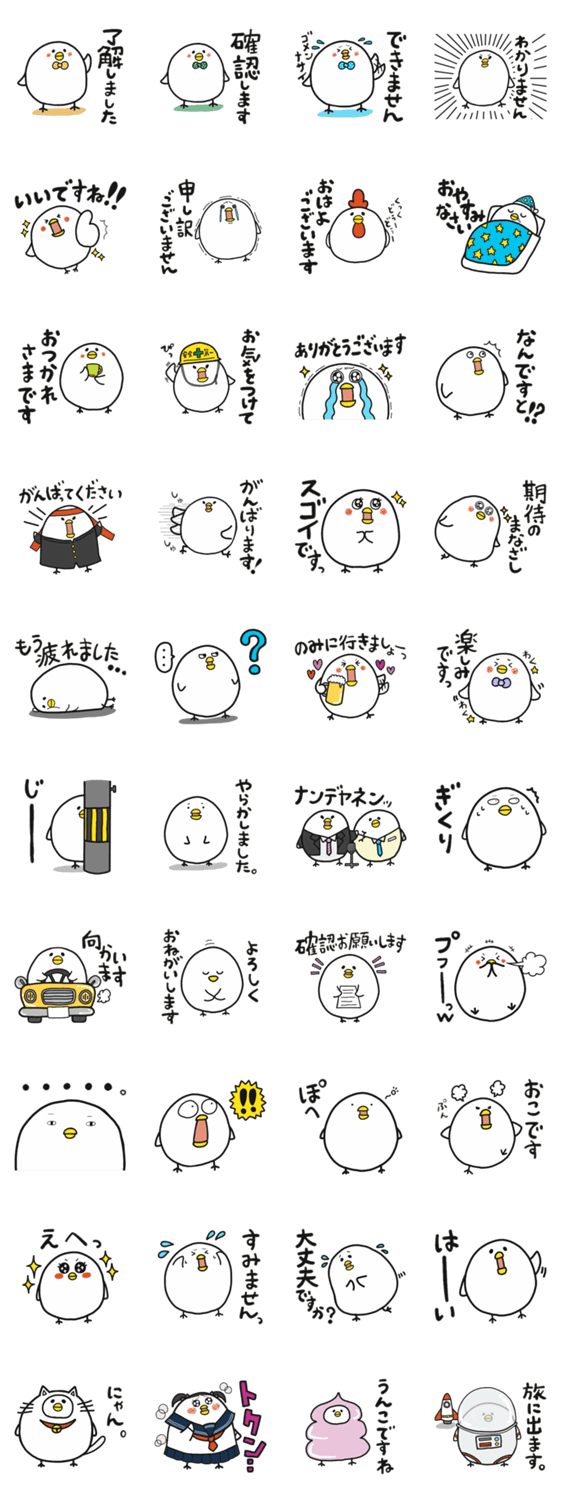 しろくてまるいとりのスタンプです。日常生活でつかえる敬語・丁寧語。