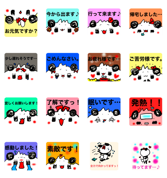 白ネコのあいうえお・・・ってるスタンプ