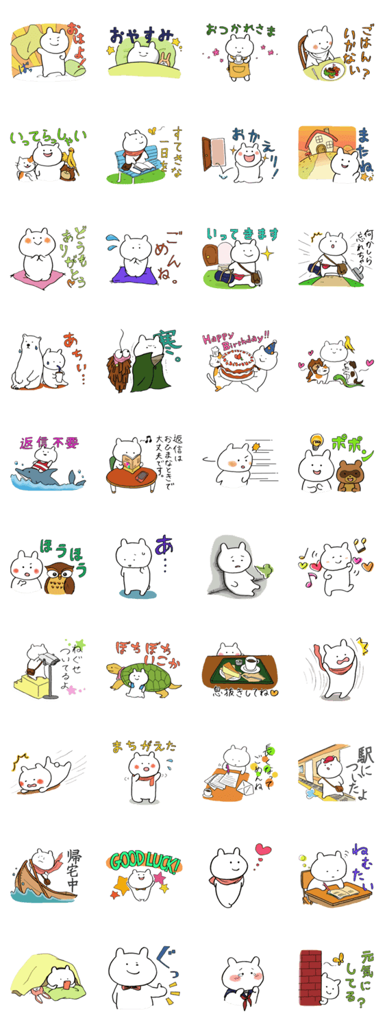 うさぎ似の動物シロちゃんのカラフルなスタンプです。ほのぼの&シンプル、けれどドラマチックな毎日。友達や家族、ちょっと親しい先輩にも使えます。