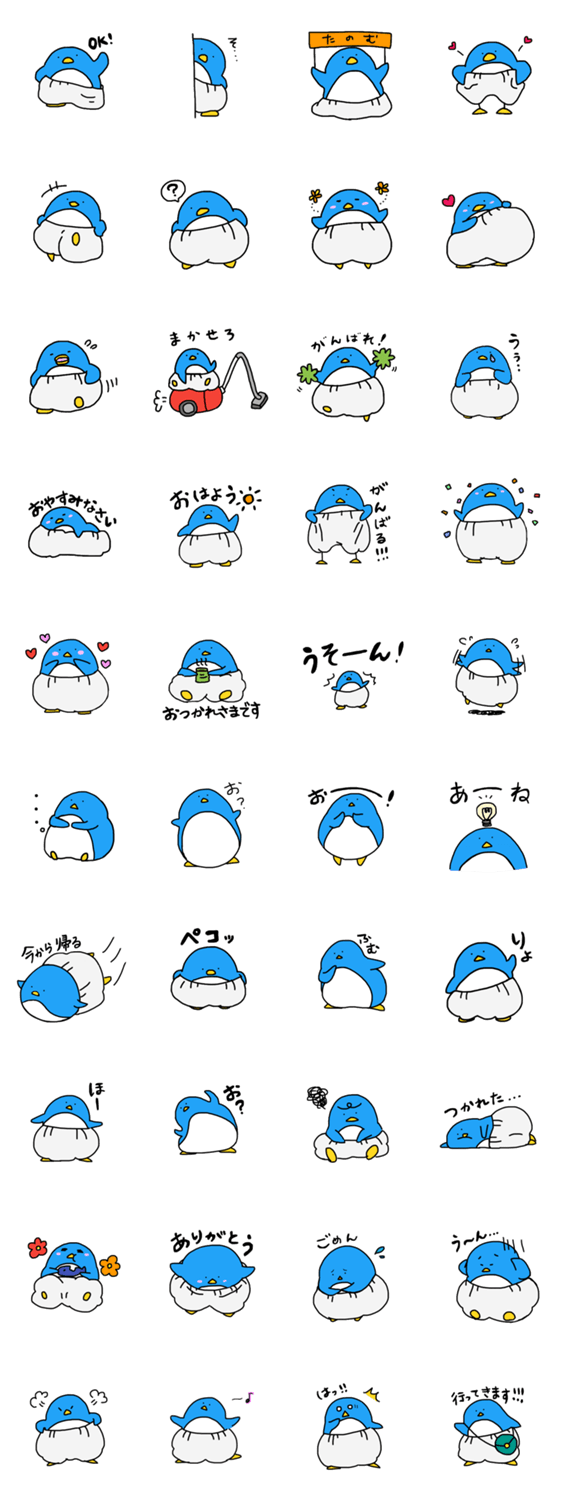 なぜかおむつを履いたペンギンが、、もこもこした可愛らしい表情のペンギンが日常会話に癒しを運びます♪