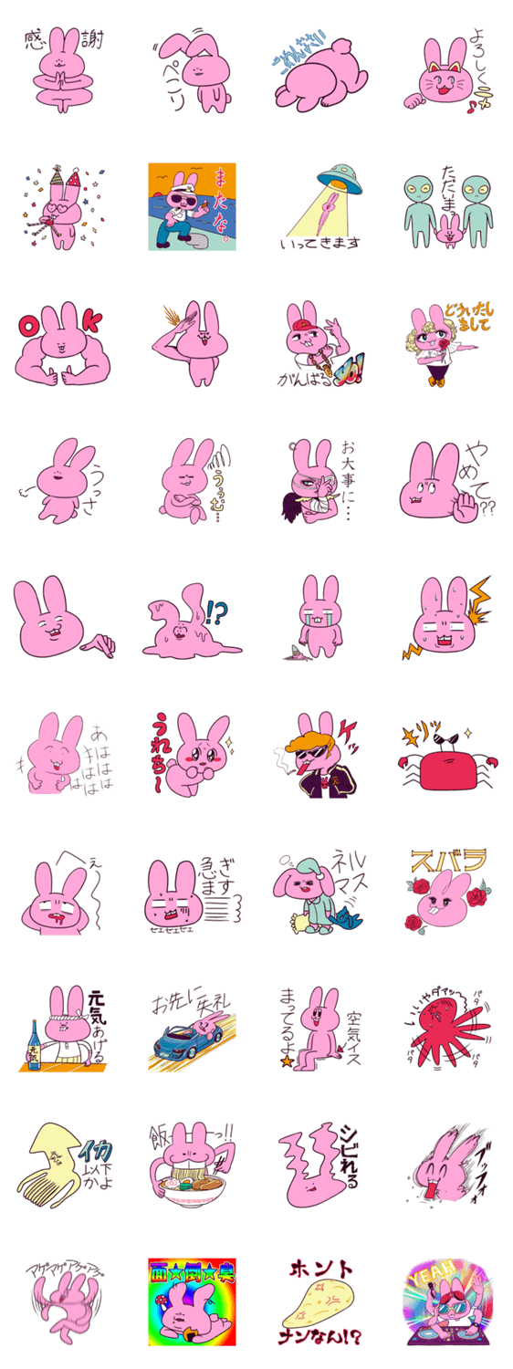 知る人ぞ知るうさぎ界のカリスマ、ラビット・デッパ(通称ラビデ)のスタンプだよ。友達の海の幸とナンもいるよ。