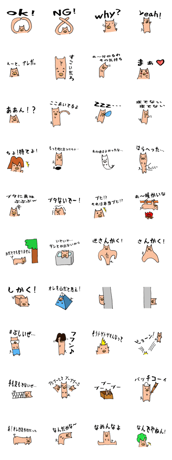 ちょっぴりしっぽが長いブタ太さんのおもしろスタンプです!