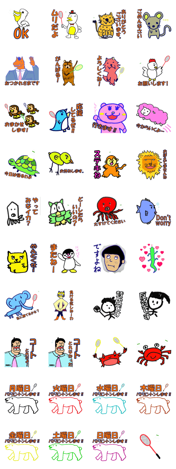 このスタンプを使って華麗なバドミントンな人生を送ろう!!! バドミントンプレイヤーでなくとも、このスタンプを使えば華麗なる人生を送れること間違いなし!!!