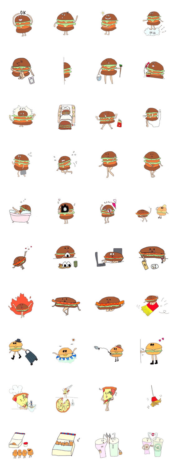 ファーストフードのスタンプ。ファーストフードのおともだち。