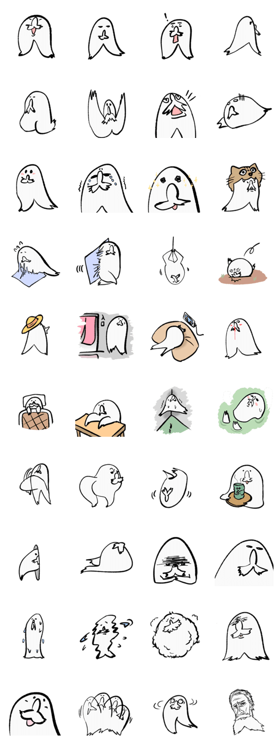 白ネコのあいうえお・・・ってるスタンプ
