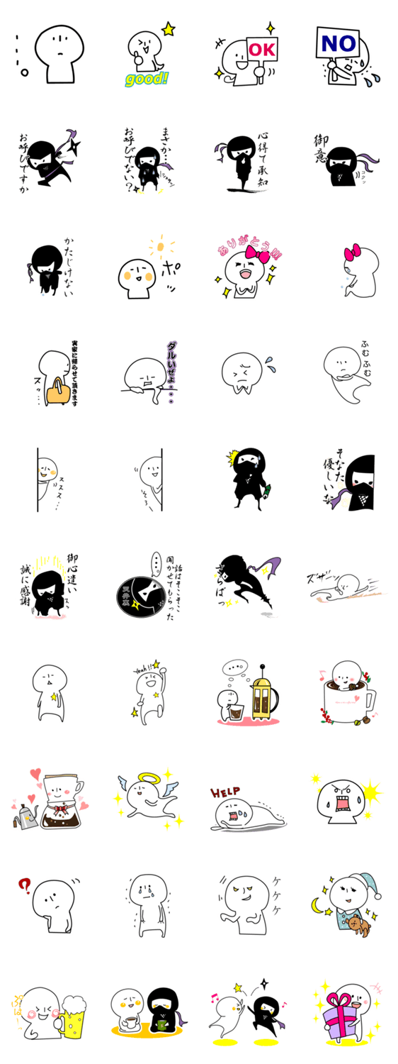 授業中のラクガキから生まれたキャラクターが友人の希望でついにスタンプ化!!ポーカーフェイスで義理堅い忍者"カゲ"とコーヒー好きで感情表現豊かなの白き住人の物語