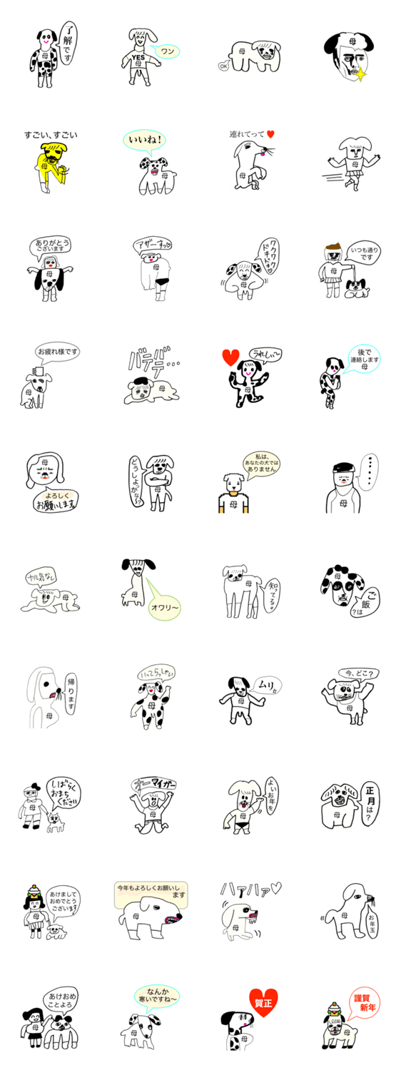 母さん専用(犬・いぬ・イヌさんばかり)のお名前スタンプです。2020年の年末年始・お正月(正月)スタンプもある油山のスタンプです。