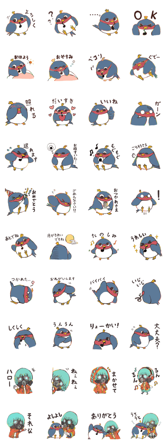 トラベリングカラーのキャラクター「ヴェルくん」と謎の女の子スタンプ