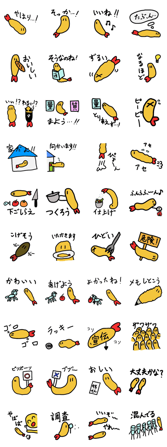 表情少なめのエビフライ。言葉じゃ伝えづらい微妙なニュアンスの表現にどうぞ。