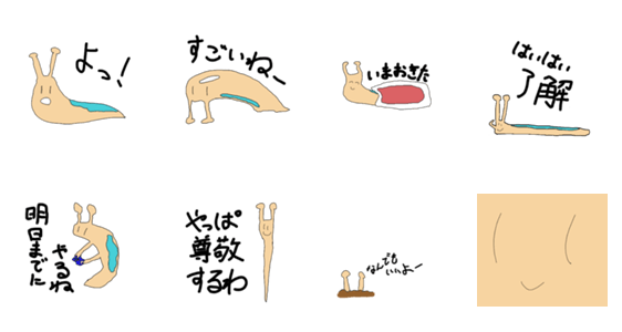 人生のんびり行こうねって感じ。じんせいなめくじくんをよろしくお願いします。先輩や上司に使ってしまった時の責任は取りません。
