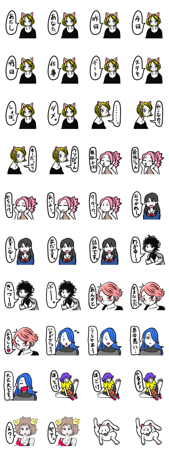 白ネコのあいうえお・・・ってるスタンプ