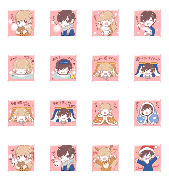 | スタンプ説明 | ゲームが大好きなふわふわちゃんと、ふわふわ君の冬に使えるスタンプです |