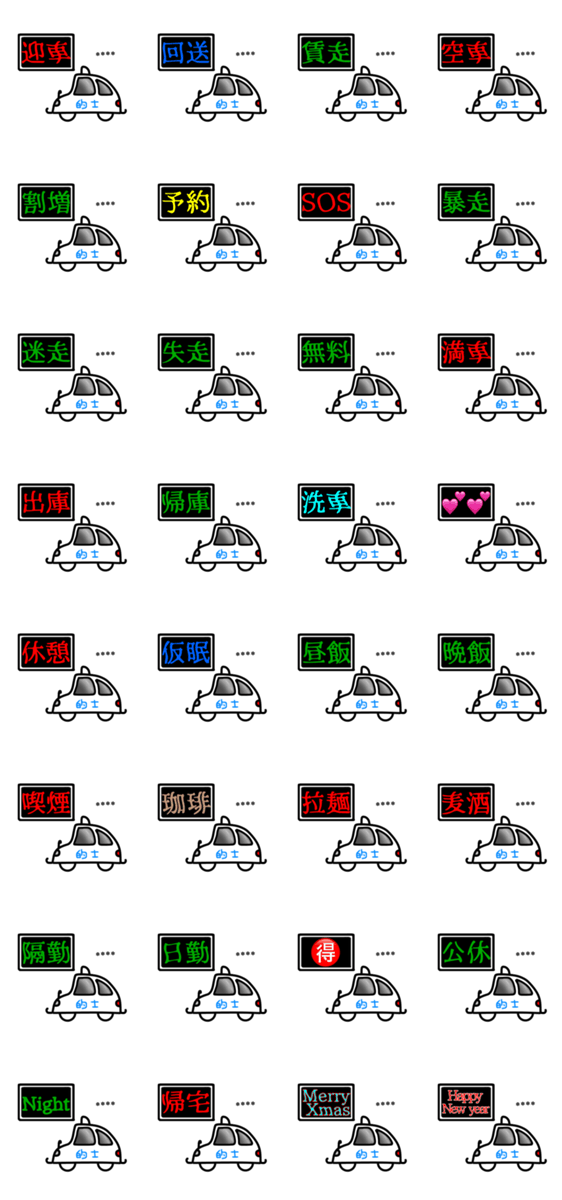 日常会話に使えるタクシー表示のシンプルなスタンプです。