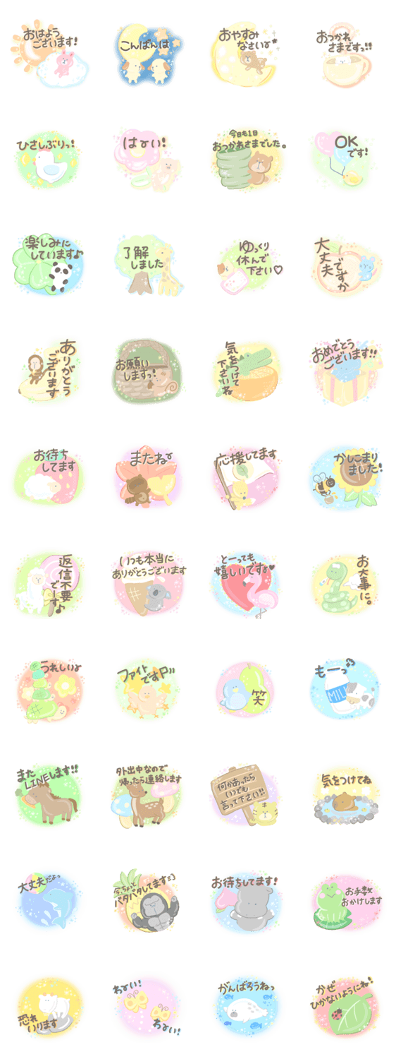 動物のキラキラしたスタンプです!よく使う言葉がたくさん!