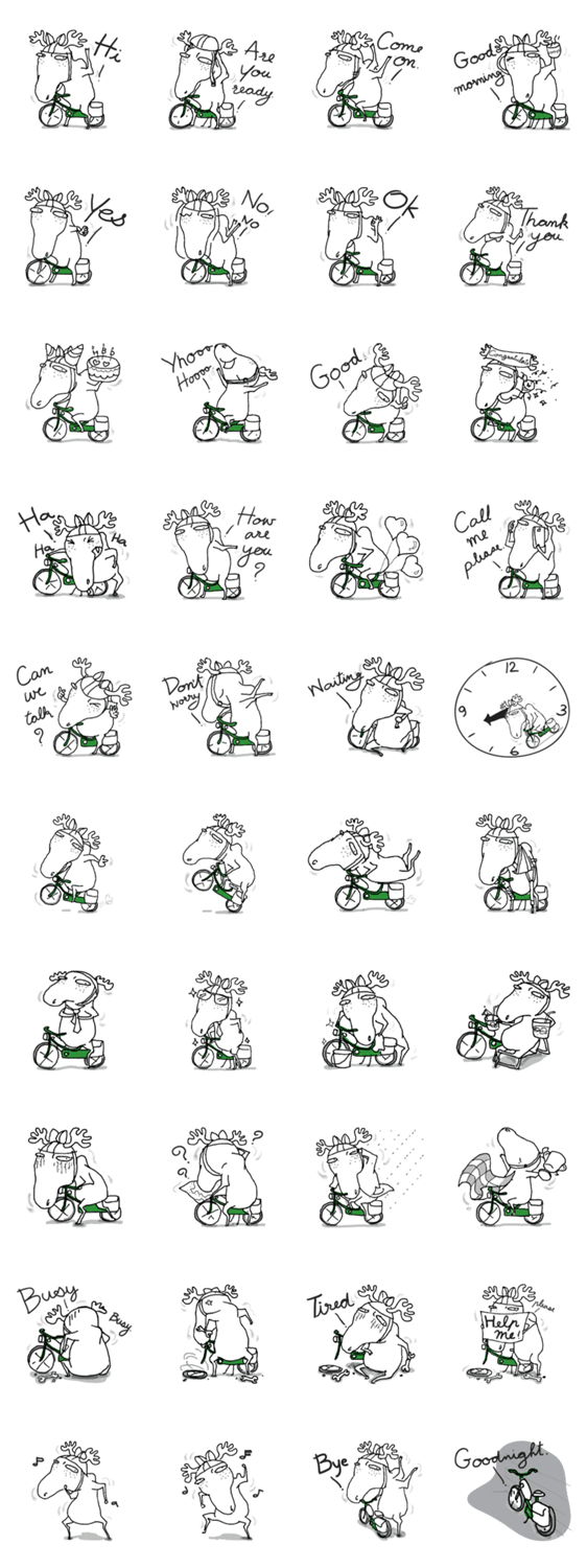 | スタンプ説明 | I am the moose. I do not drag sleigh for Santa Claus. I use the cool green moped. You can call me Roger. Make sure you can handle me. |