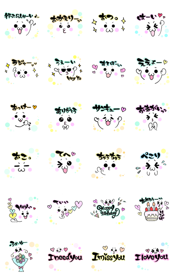 スタンプ説明 日常で使いやすい言葉を可愛い顔文字と一緒に♪