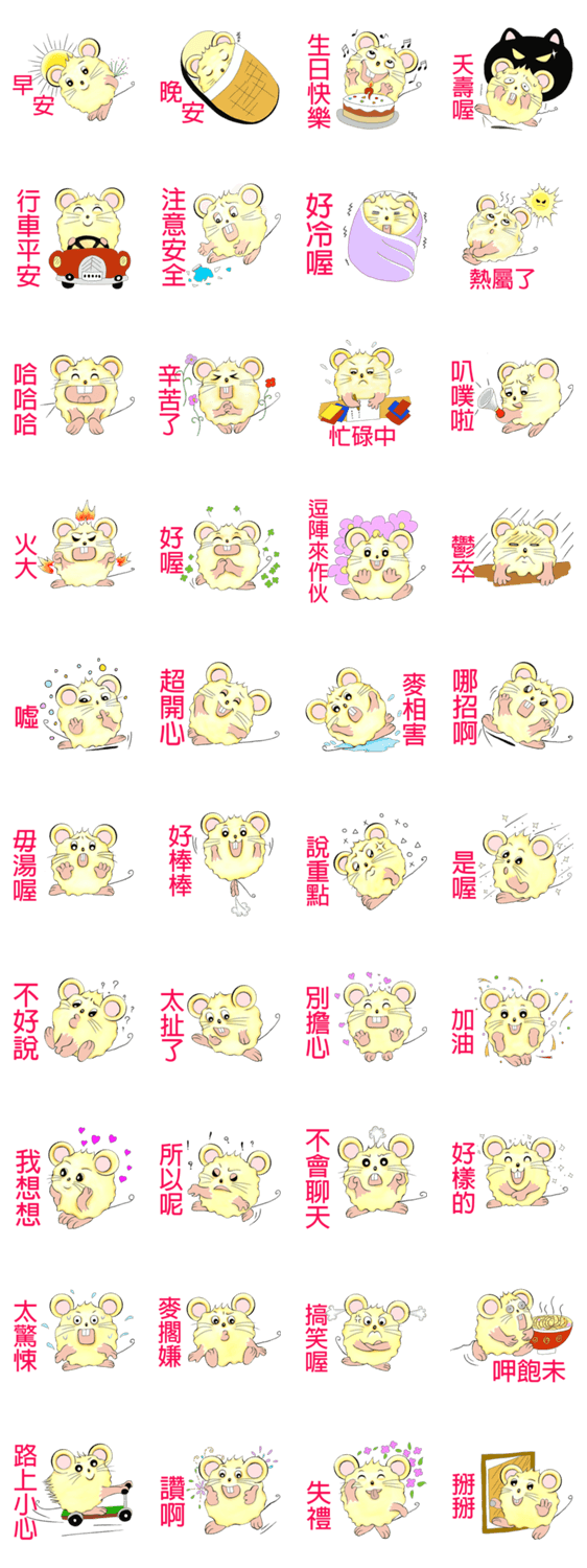 | スタンプ説明 | The fluffy and tooty mouse will accompany you to welcome the coming of the year of the mouse. |