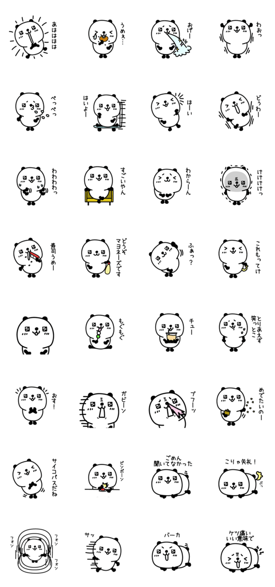 2個目です。キラキラお目々のパンダです。かわいい感じで基本的には使いやすいと思います。絵文字もあります。