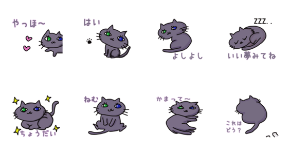 可愛いオッドアイの灰色の猫の動くスタンプです。