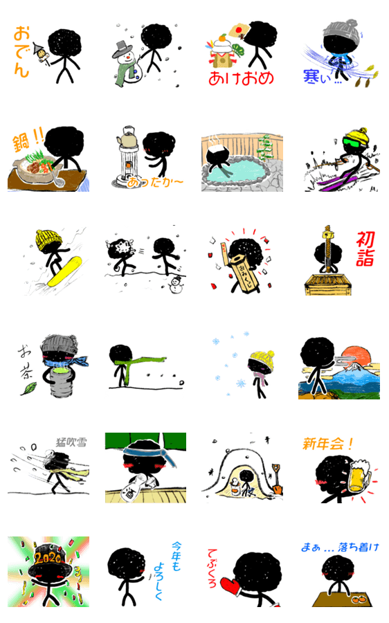 シンプルでかわいい、 冬に使える MOJA スタンプをセットにしました。