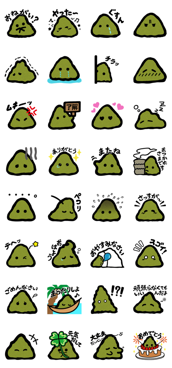 三角のゆるっとした、かわいい練りわさびの「さびえもん」!日常会話で使いやすいスタンプです。