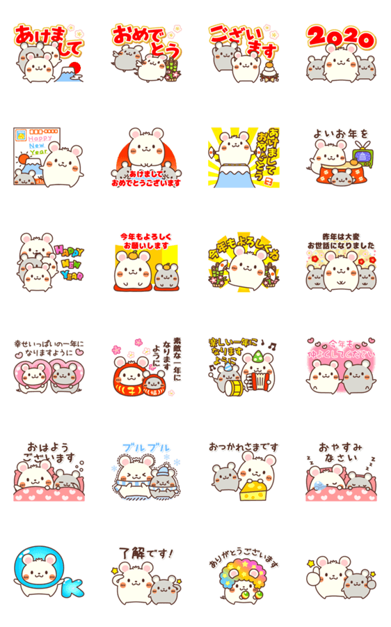 年末年始、新年のご挨拶にピッタリのかわいく動くこねずみたちの年賀LINEスタンプです♪ 子年の正月はもちろん、冬の毎日に使える楽しいスタンプが盛りだくさんです!
