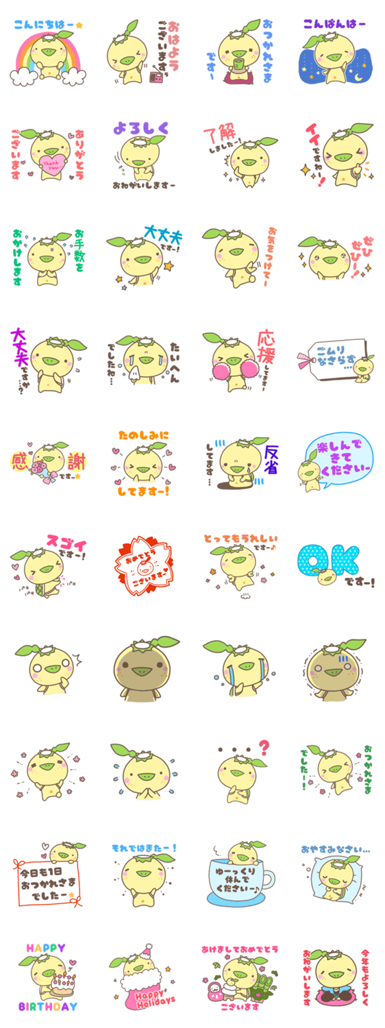 誰にでも送れて、大人も使いやすい、ゆずがっぱのほんわか優しい敬語・丁寧語スタンプです。