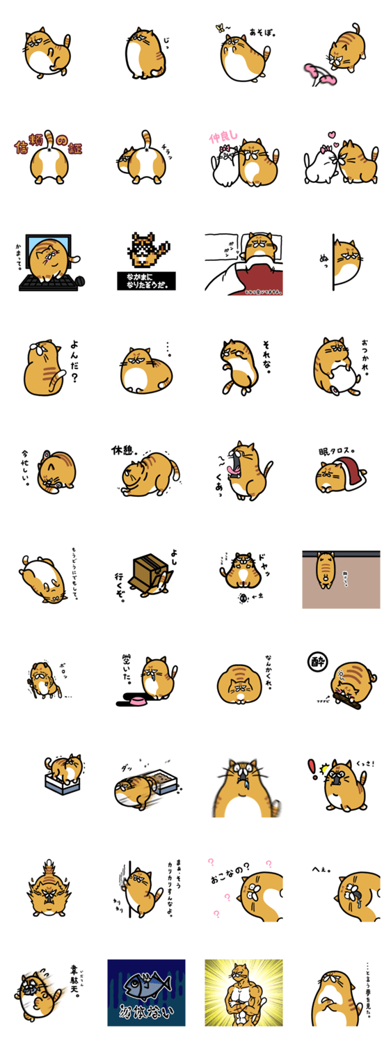 ふっくらもちもちした目つきの悪い猫、たろちゃのスタンプです。