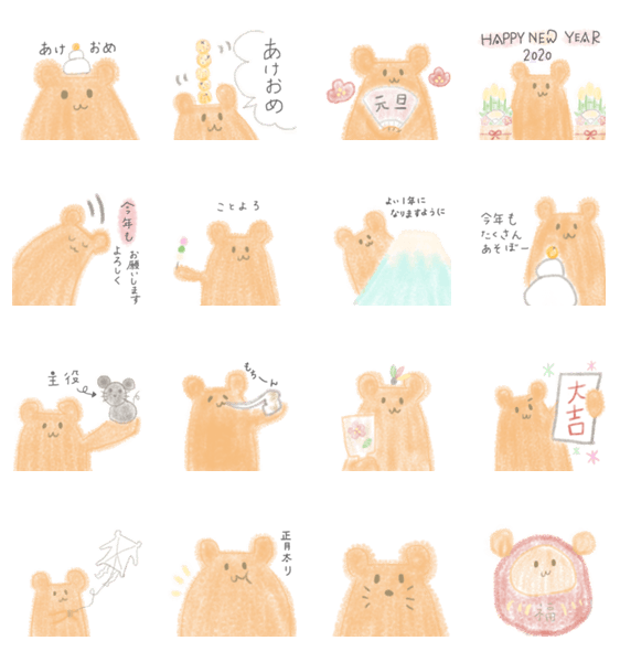 クレヨンくまのお正月スタンプ -LINEスタンプマニア