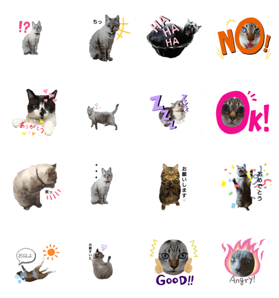 白ネコのあいうえお・・・ってるスタンプ