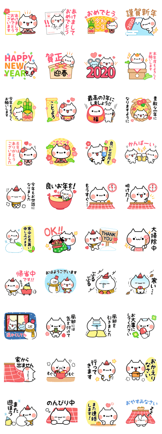 年越し、新年のご挨拶に使いやすいスタンプです!寒い冬も、元気な猫と一緒に楽しく乗り越えましょう!家族/友人/恋人/先輩/後輩との会話に是非添えてみてください♪