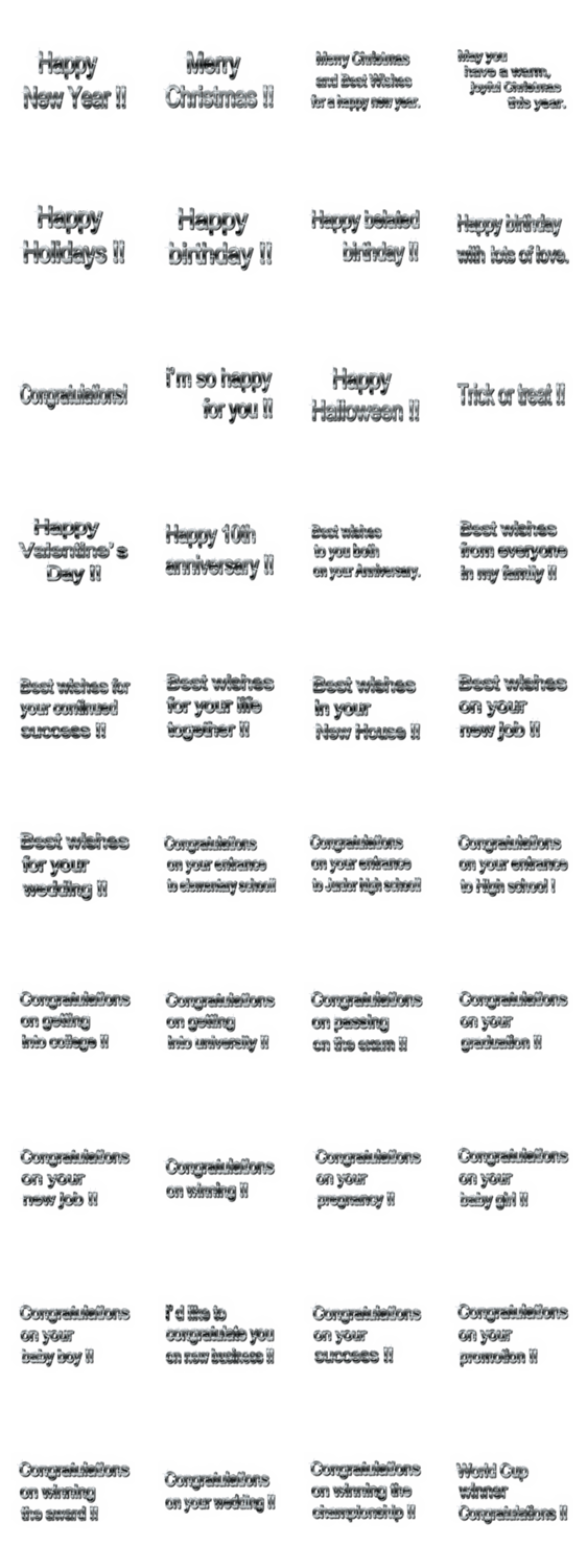 | スタンプ説明 | 行事、人生の記念日、お祝いに!最大級の賛辞を豪華に素早く送れます。 |