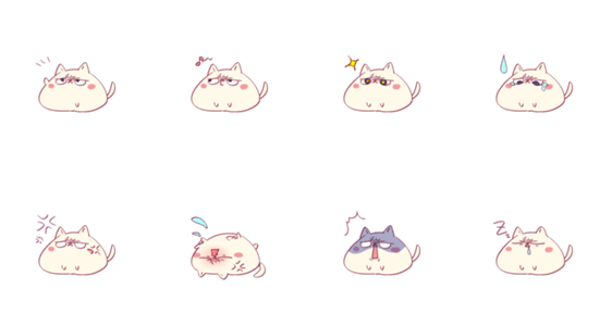 ぷにゅっとつぶれた猫のゆるかわいいスタンプです。