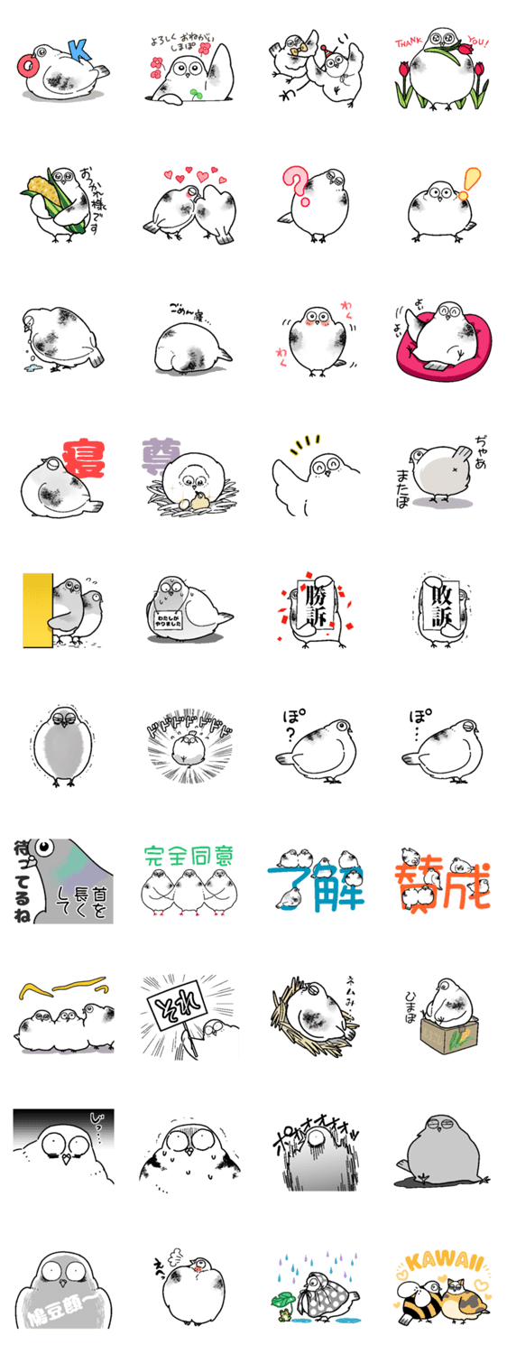 ふっくら丸くて感情豊かなハトさんのスタンプです。