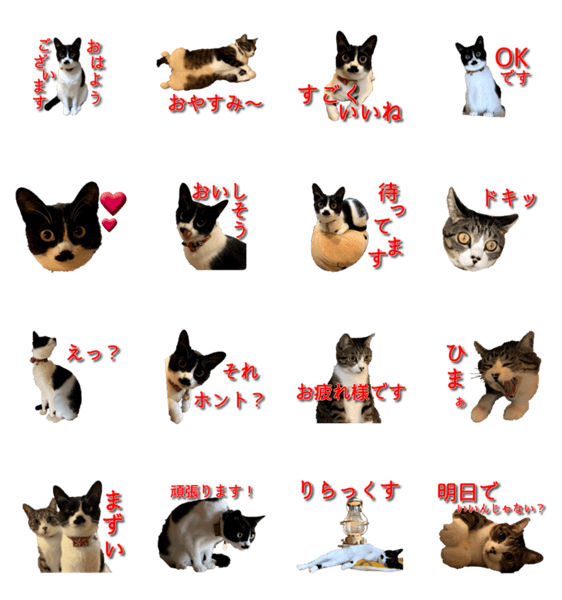 飼い猫(アンとチョビ)が見せる表情のスタンプです。