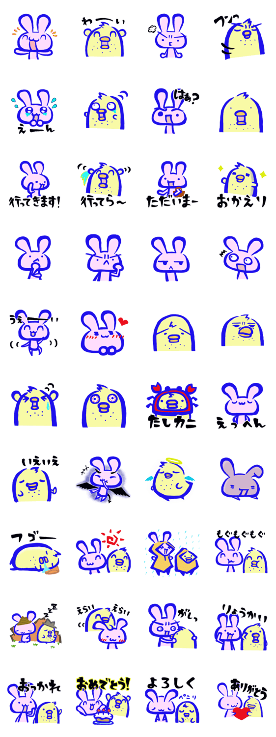 うささんとぴよこくんの仲良し日常スタンプ②です。よろしければ使ってやって下さい。